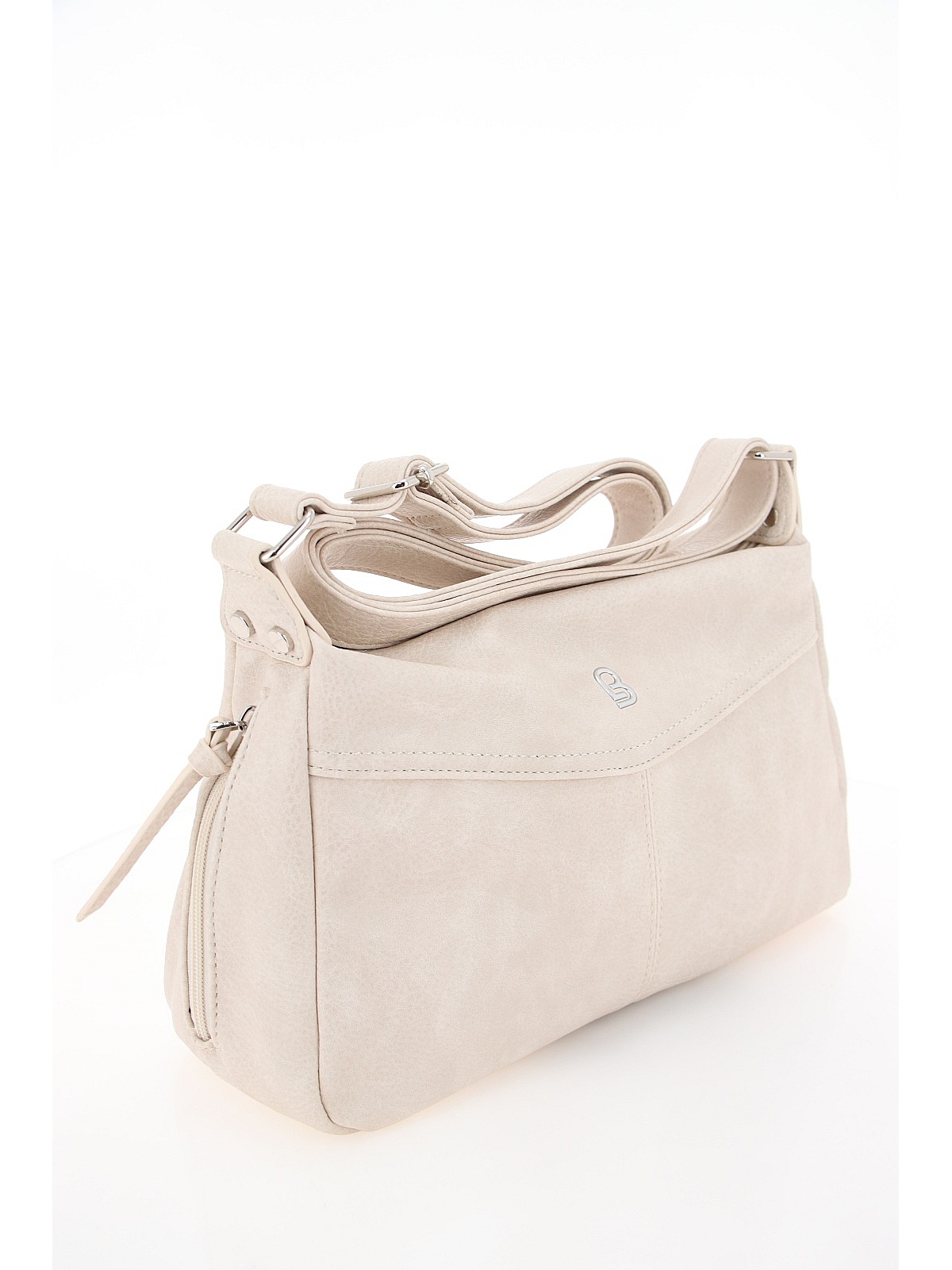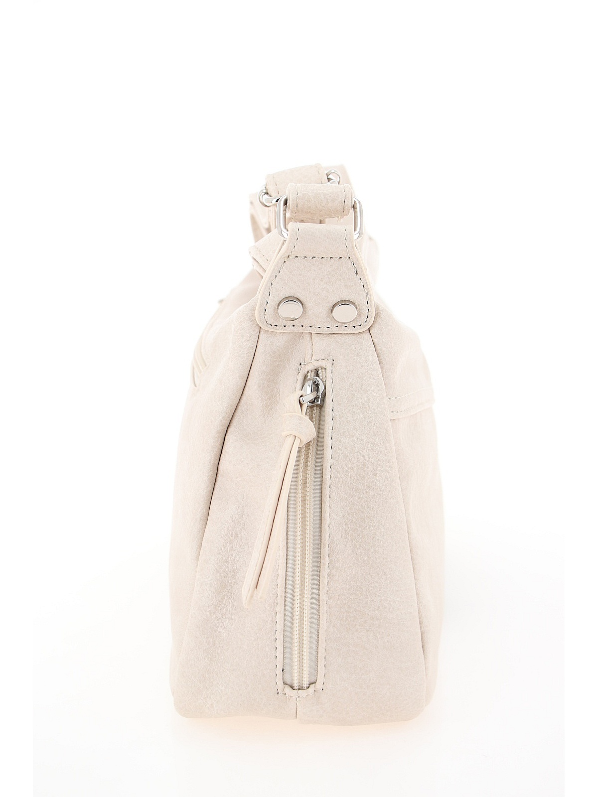 Женская сумка BADEN нежного бежевого цвета — практичный аксессуар для повседневного гардероба. Модель из мягкой искусственной кожи имеет закругленные углы и плоское устойчивое дно. По бокам находятся декоративные вертикальные молнии с длинными пуллерами. Широкий регулируемый ремень крепится на металлические заклепки, позволяя носить сумку на плече или через плечо. Фурнитура серебристого цвета гармонично дополняет дизайн. Эта модель станет стильным дополнением ваших прогулок и повседневных образов. оптом в Кемерово