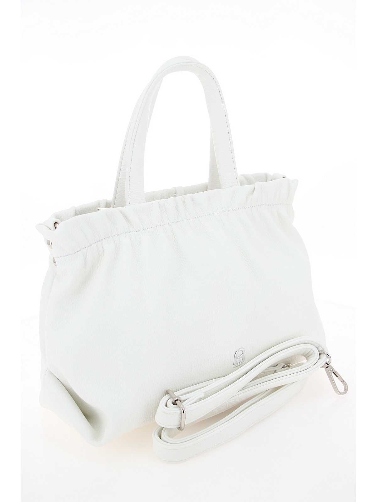 Женская сумка BADEN нежного белого цвета — вместительный и женственный аксессуар для повседневного гардероба. Модель из мягкой искусственной кожи с зернистой матовой фактурой имеет слегка трапециевидную форму. Главная особенность дизайна — эффект присборенности по верхнему краю, создающий мягкий объем. Две короткие ручки позволяют носить сумку в руках или на локте, а длинный регулируемый ремешок на карабинах добавляет универсальности для ношения на плече или через плечо. Фурнитура серебристого цвета гармонично дополняет лаконичный образ. Эта модель станет стильным дополнением ваших прогулок и повседневных образов. оптом в Кемерово