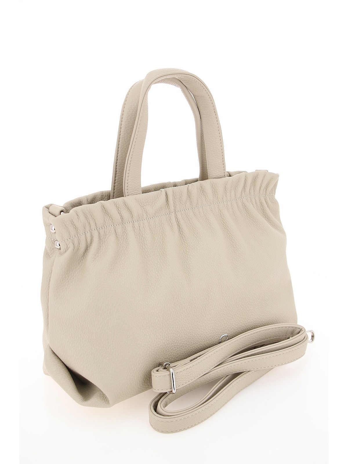 Женская сумка BADEN нежного бежевого цвета — вместительный и женственный аксессуар для повседневного гардероба. Модель из мягкой искусственной кожи с зернистой матовой фактурой имеет слегка трапециевидную форму. Главная особенность дизайна — эффект присборенности по верхнему краю, создающий мягкий объем. Две короткие ручки позволяют носить сумку в руках или на локте, а длинный регулируемый ремешок на карабинах добавляет универсальности для ношения на плече или через плечо. Фурнитура серебристого цвета гармонично дополняет лаконичный образ. Эта модель станет стильным дополнением ваших прогулок и повседневных образов. оптом в Кемерово